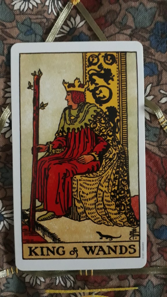 In această citire, simbolul baghetă vorbește despre aspectele interioare care creează fricțiune, foc și turbulență – deseori intelectul/aspectul mental/egoul. Fiind aici regele de baghetă, înțeleg că impulsul mental/egoul este cel rănit și tulburat de întâmplarea recentă și asta aduce dificultatea găsirii unei soluții pentru că reacția habituală de a reacționa la această situație este de a amâna acțiunea prin crearea de ambiguitate.
